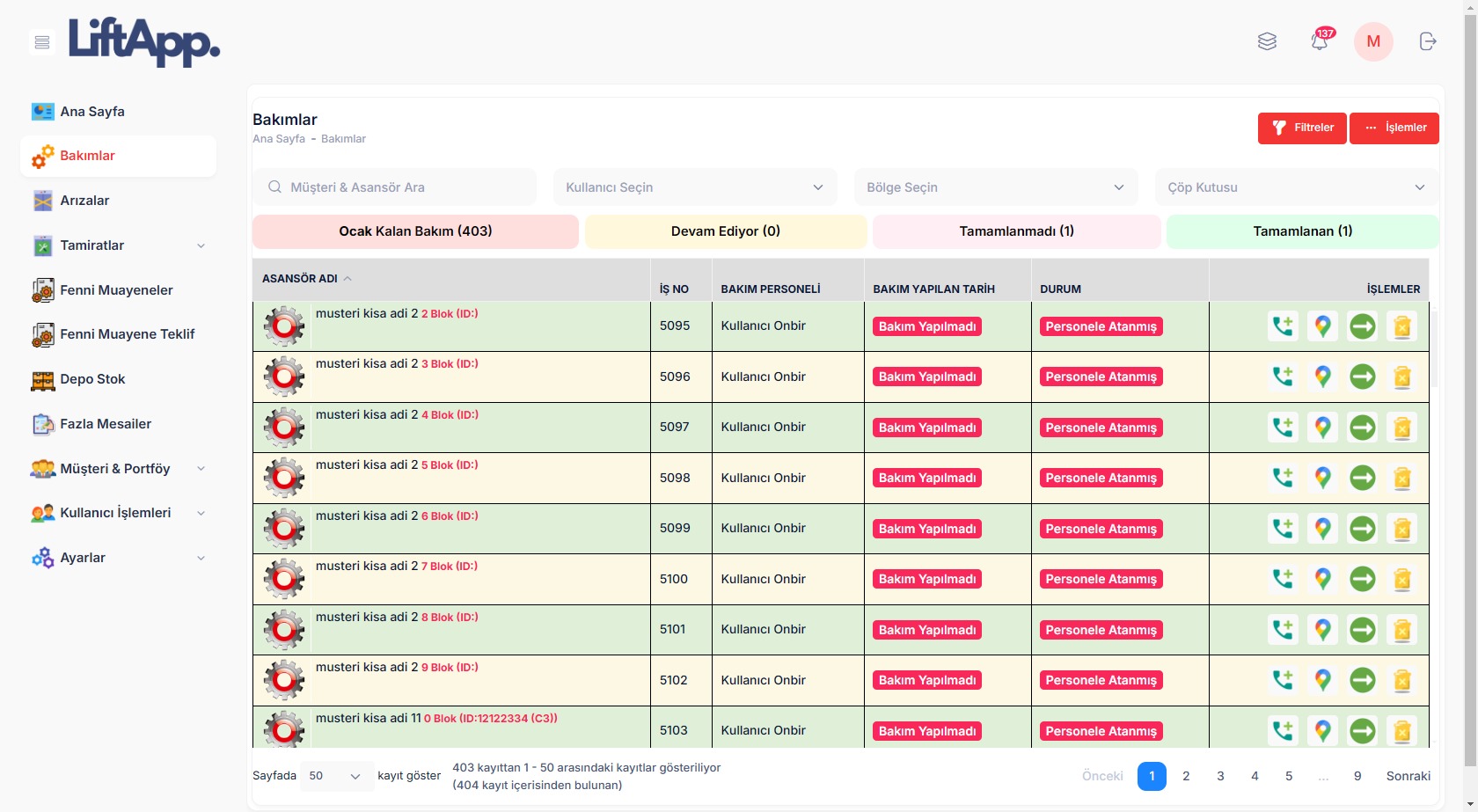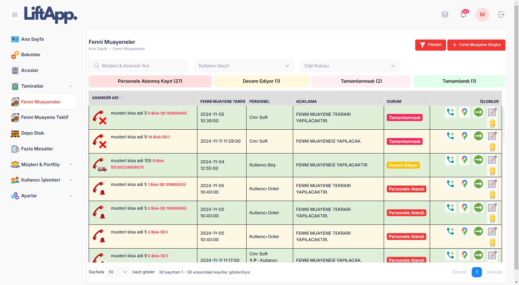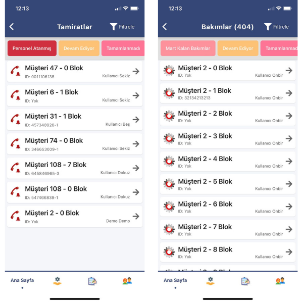 - Bakım Yönetimi: Planlanan ve tamamlanan bakımların takibi.